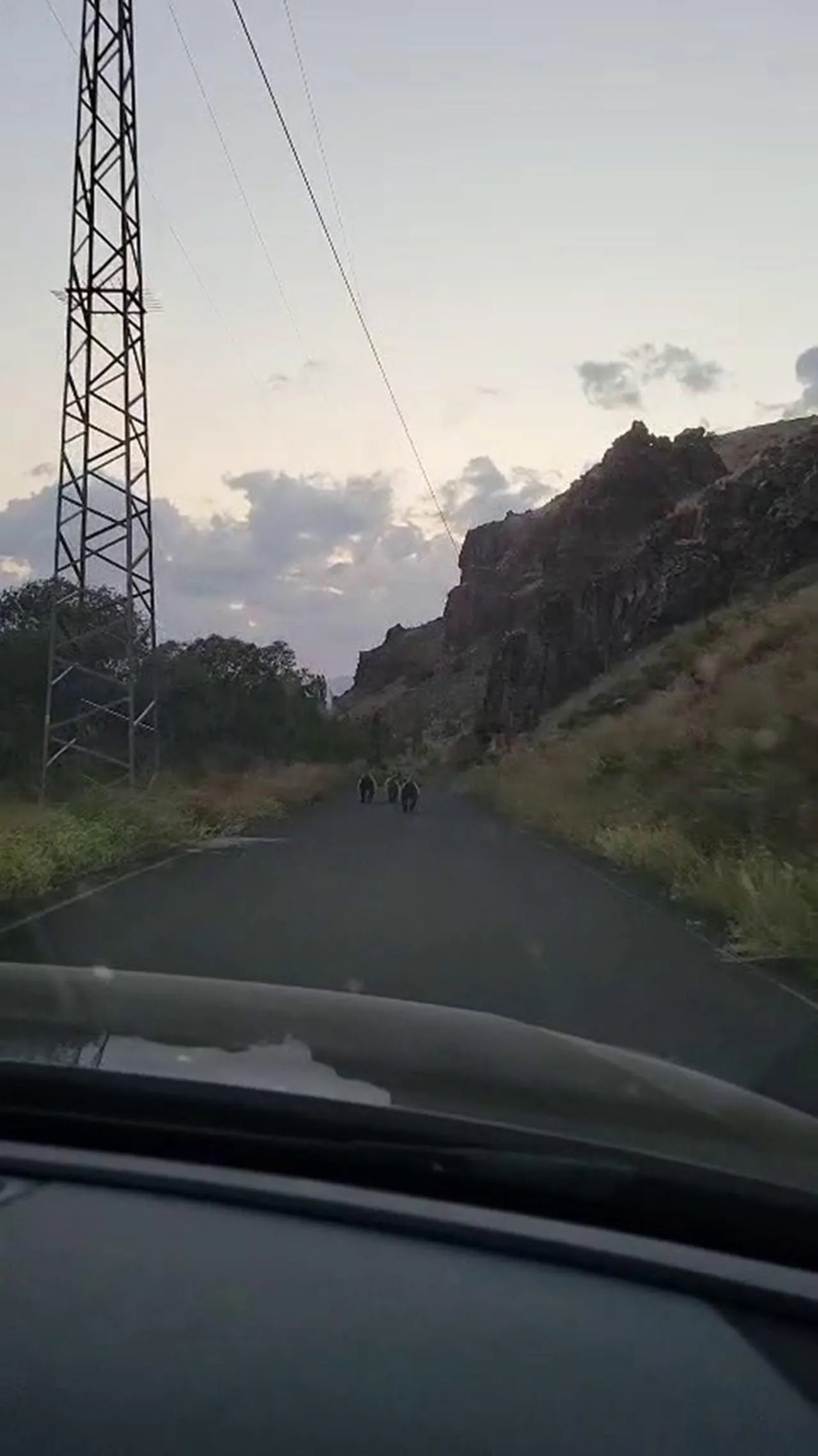 Bir süre otomobilden yavru ayıları takip eden sürücü ayıların araziye yönelmesinden sonra yoluna devam etti.