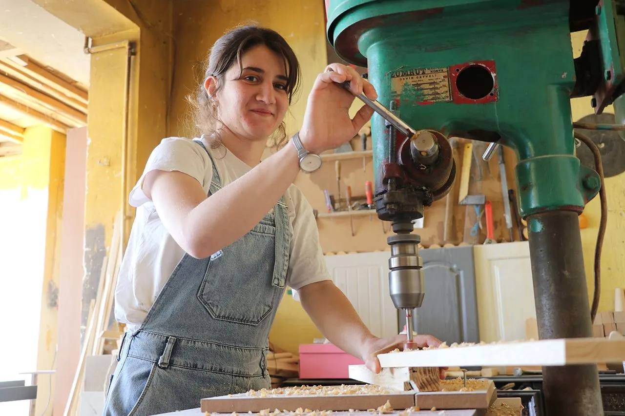 Akgül, zamanla işin inceliklerini öğrenerek, marangozlukta bir erkeğin yapabildiği kesme, biçme ve doğrama gibi tüm işleri de ustalıkla yerine getiriyor.