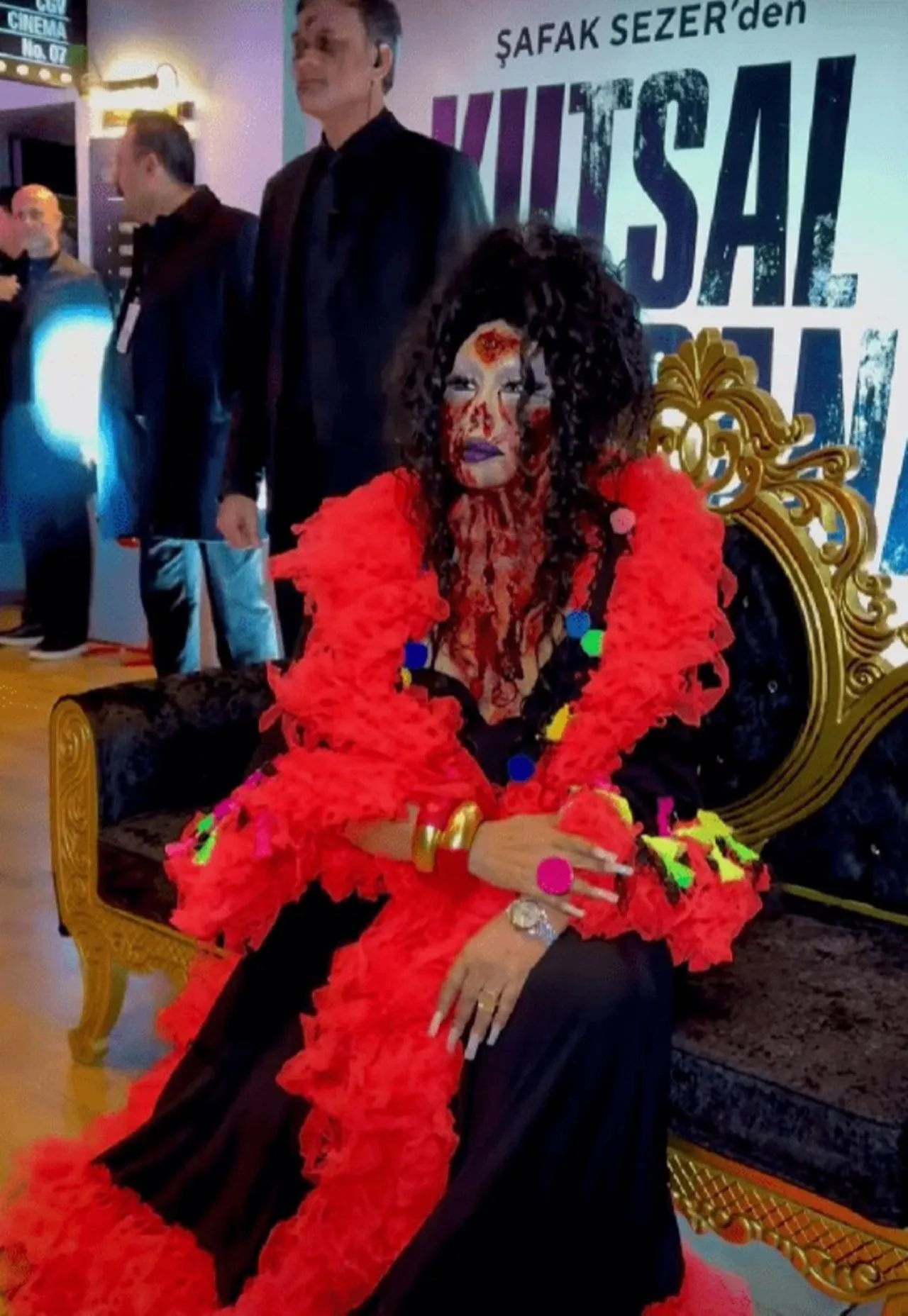 Bülent Ersoy galaya zombi kılığında geldi Galerinin tamamı için tıklayınız Filmde kendisini canlandıracak olan Ersoy, özel bir makyaj tekniğiyle zombiye dönüştürülmüştü.