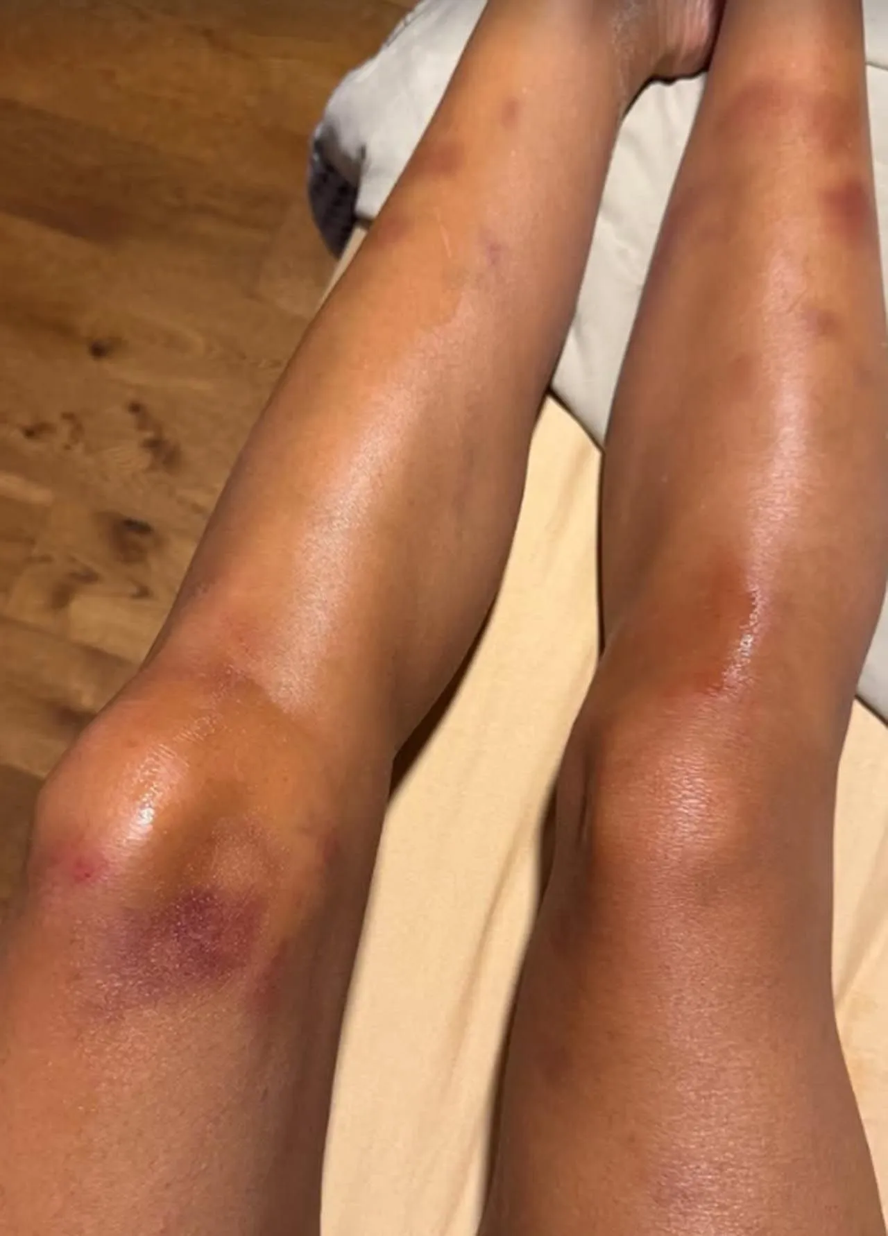 Çağla Şıkel bir süre önce sosyal medyadan paylaştığı ve bacaklarının morluklar içerisinde olduğu fotoğrafla gündem olmuştu.