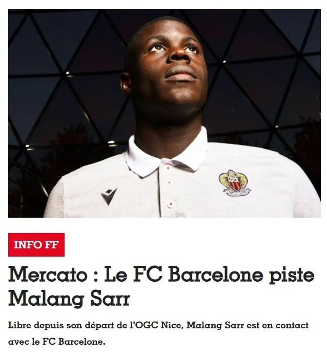 France Football'da yer alan habere göre Katalan ekibi, Nice'ten ayrıldığından beri kulüpsüz olan genç defans oyuncusu Malang Sarr'ı kadrosuna katmak istiyor.