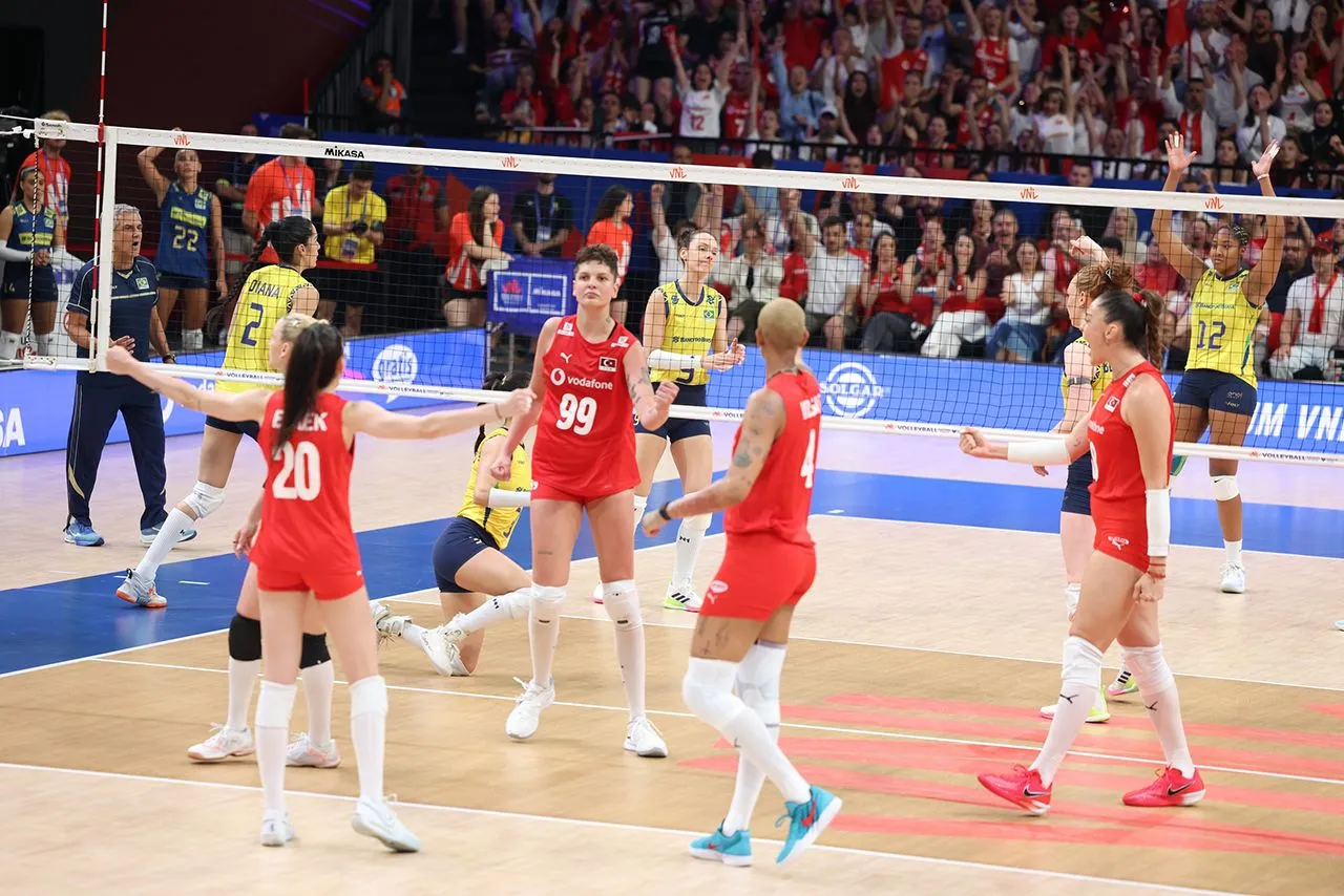 Karşılaşmanın ilk setinde etkili bir oyun sergileyemeyen Türkiye, Brezilya’nın baskılı servisleri ve hızlı hücumları karşısında zorlandı.
