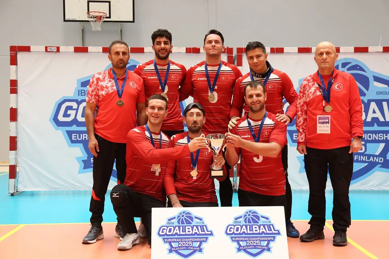 Erkek Goalball Milli Takımı, 2025 IBSA Goalball Avrupa Şampiyonası finalinde Ukrayna’ya karşı mücadele etti. Başantrenör Gökhan İnce yönetiminde Ebubekir Sıddık Kara, Hüseyin Alkan ve Burak Korkmaz üçlüsüyle sahaya çıkan ay-yıldızlılar, güçlü savunma ve kararlı oyunuyla tarihi bir zafere imza atarak Avrupa’da şampiyonluğa ulaştı.