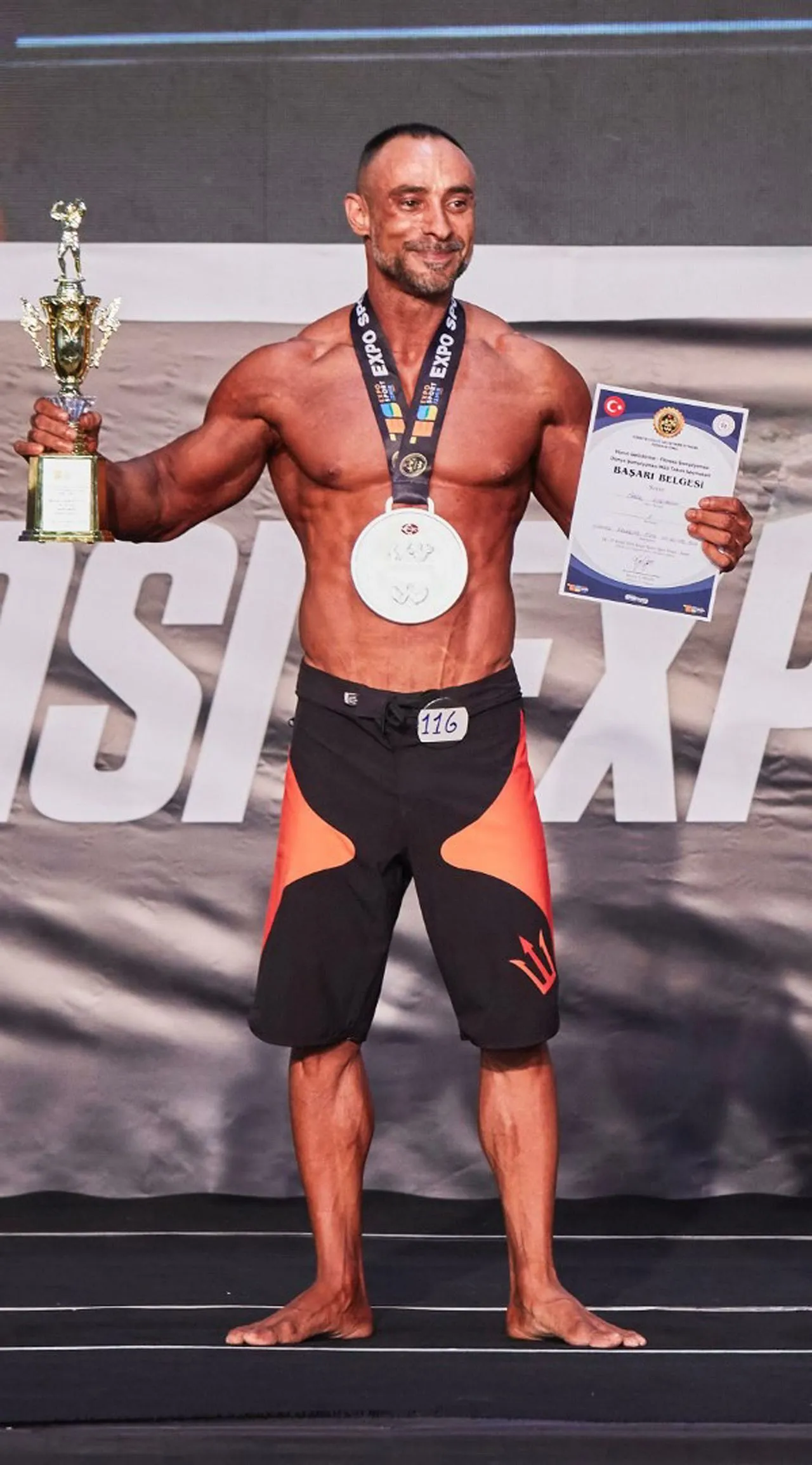 Manisa'da kilo almak için spora başlayan 40 yaşındaki Ömer Karaman adlı vatandaş 5 yılda 25 kilo alıp son 6 ay içinde katıldığı 2 ayrı vücut geliştirme yarışmasında Türkiye ikincisi oldu.