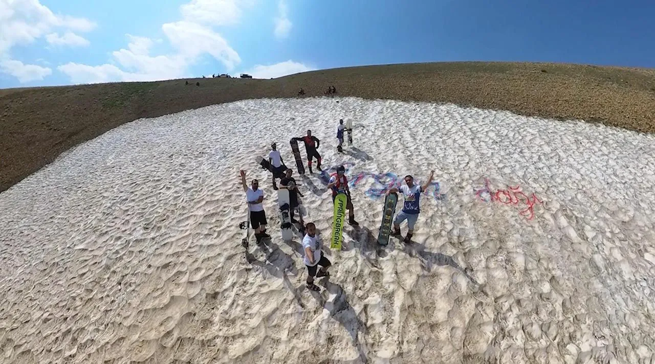 Sıcağın etkisinden kurtulmak için Ergan Dağı'na çıktıklarını belirten Yunus Kaya da ağustos ayında snowboard keyfi yaşadıklarını söyledi.