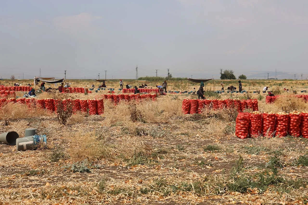 Galerinin tamamı için tıklayınızSoğan hasadının bereketli olduğunu fakat tarla fiyatının 5 TL olmasının çiftçiyi olumsuz etkilediğini ifade eden işçibaşı Süleyman Budak, "Biz burada soğan hasadı yapıyoruz. Burası 100 dönümlük bir soğan tarlası. Hasat bu yıl çok iyi ama fiyatlar bu yıl kırık oldu. Soğan tarlada 5 ila 6 TL iken büyük marketlerde 20 ila 25 TL civarında fiyatı oluyor. Hasadın ilk zamanlarında fiyatı 8 ila 12 iken fiyatlar düştü. Biz yükselmesini beklerken fiyatlarda düşüş oldu. Havalar çok sıcak 40 dereceye geçiyor. Amik Ovası'nda 40 dereceye geçen sıcaklıklara rağmen soğan hasadı yapıyoruz. Bu sıcaklıklar altında çalışıyoruz. İşçiler arasında bazı yaşlılar var, sıcaklığa dayanamayıp bayılmaları oluyor. Bu yıl soğanda hem kalite hem de verim çok iyi durumda. Burada 130 işçimiz var. Bu sıcaklıkların altında mevsimlik işçi olarak her yıl bu taraflara gelip soğan hasadı yapıyoruz" dedi.