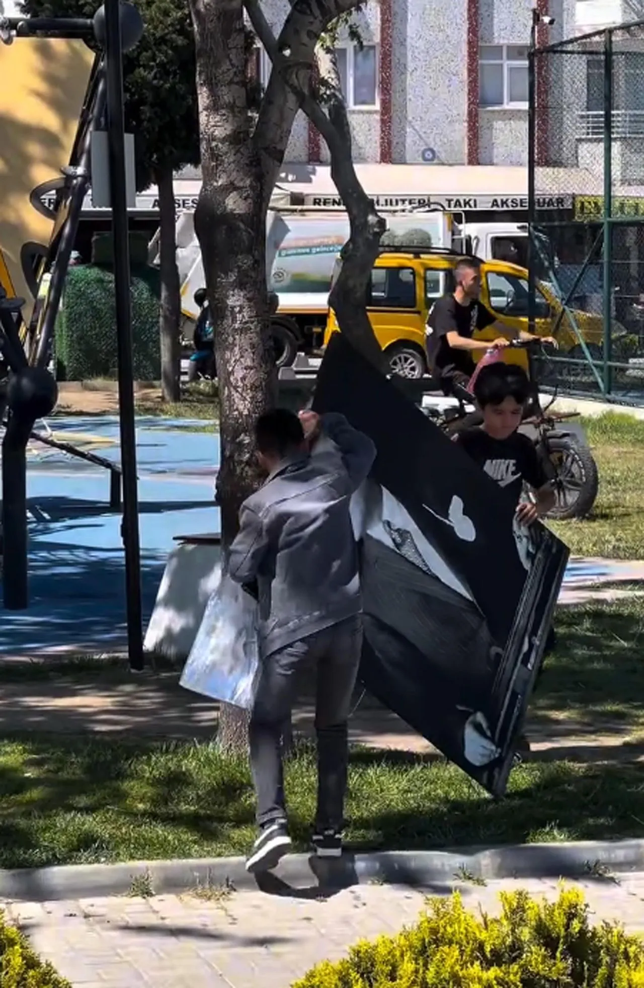 Kamera ile görüntülenen deney sırasında vatandaşlar, yatay bırakılan Atatürk portrelerini düzelterek bulundukları yere bıraktı.