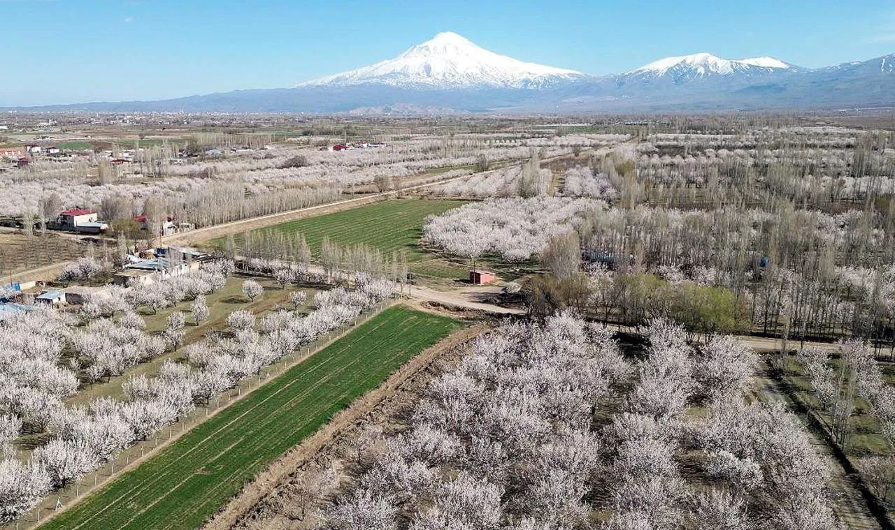 "Doğu'nun Çukurova’sı" olarak bilinen Iğdır'da bahar mevsimi ile kayısı ağaçları çiçek açtı. Çiçeklerin açması ile Iğdır Ovası, beyaza büründü.