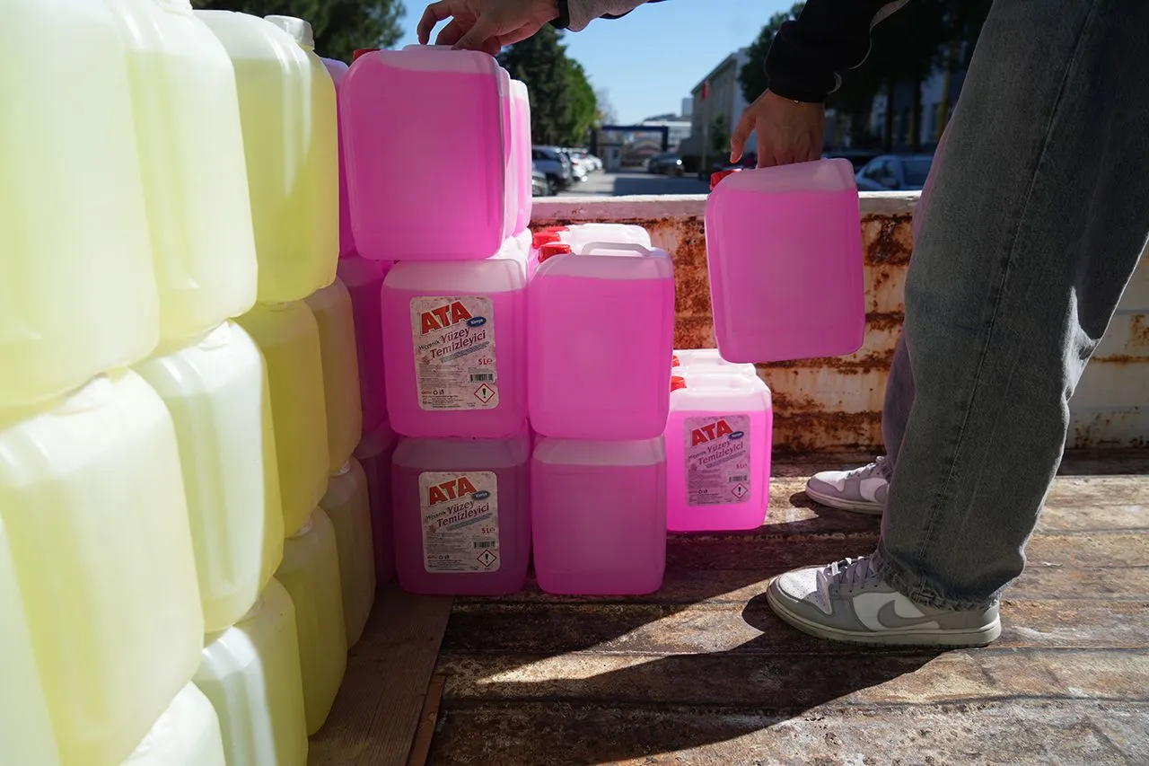 Kurumlar yaptıkları anlaşma gereği lise, yıl sonuna kadar 150 ton temizlik malzemesi üretmek için kolları sıvadı.