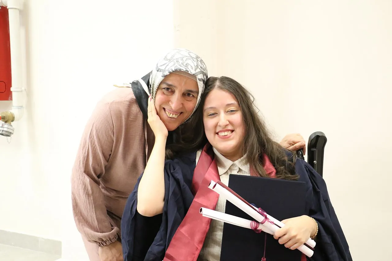 İlkokul ve ortaokula annesinin sırtında gitmişti... Engelli Tuana artık bir üniversite mezunu