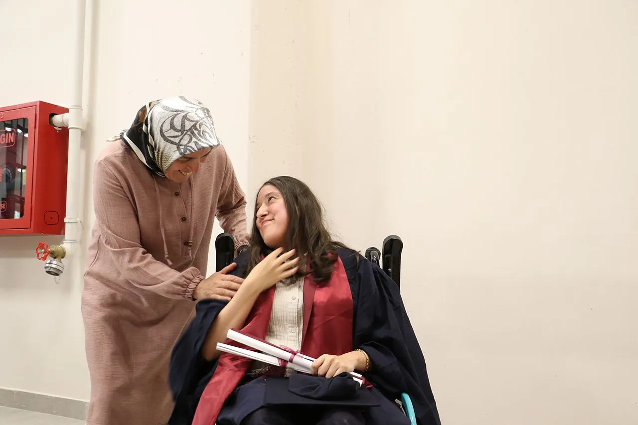 İlkokul ve ortaokula annesinin sırtında gitmişti... Engelli Tuana artık bir üniversite mezunu
