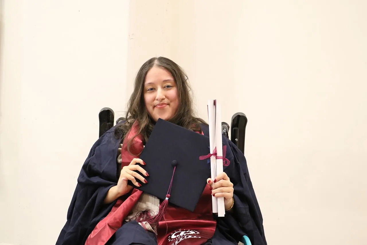 İlkokul ve ortaokula annesinin sırtında gitmişti... Engelli Tuana artık bir üniversite mezunu