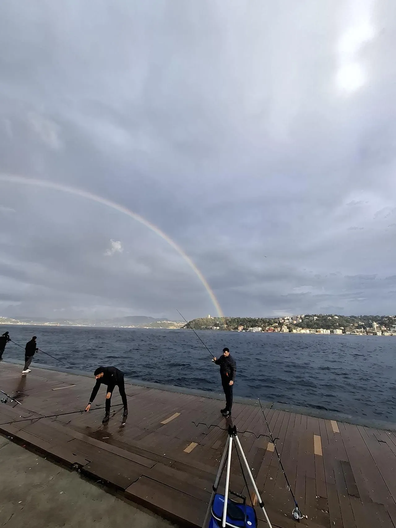 İstanbul Boğazı'nın ortasında gökkuşağı sürprizi