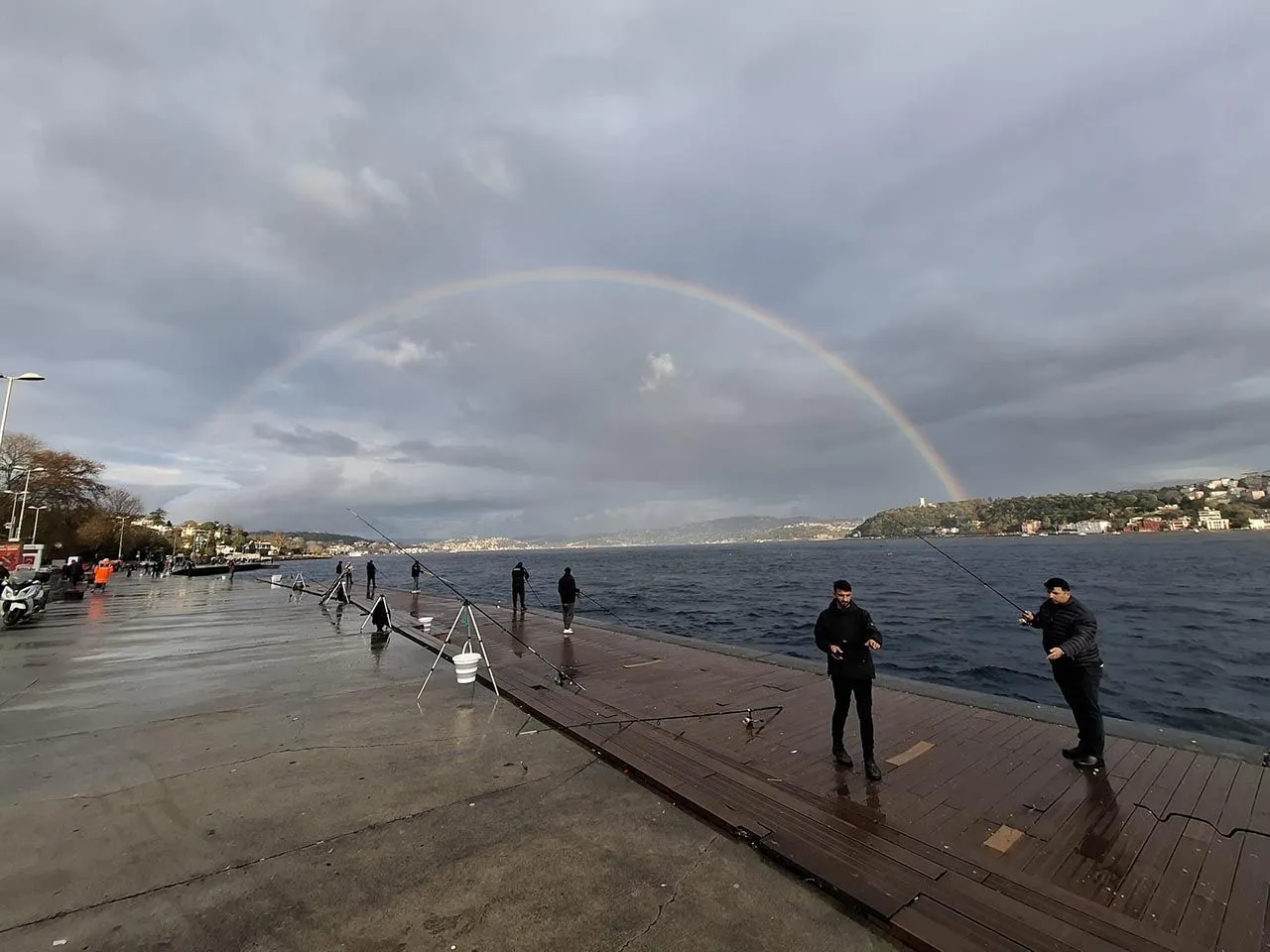 İstanbul Boğazı'nın ortasında gökkuşağı sürprizi