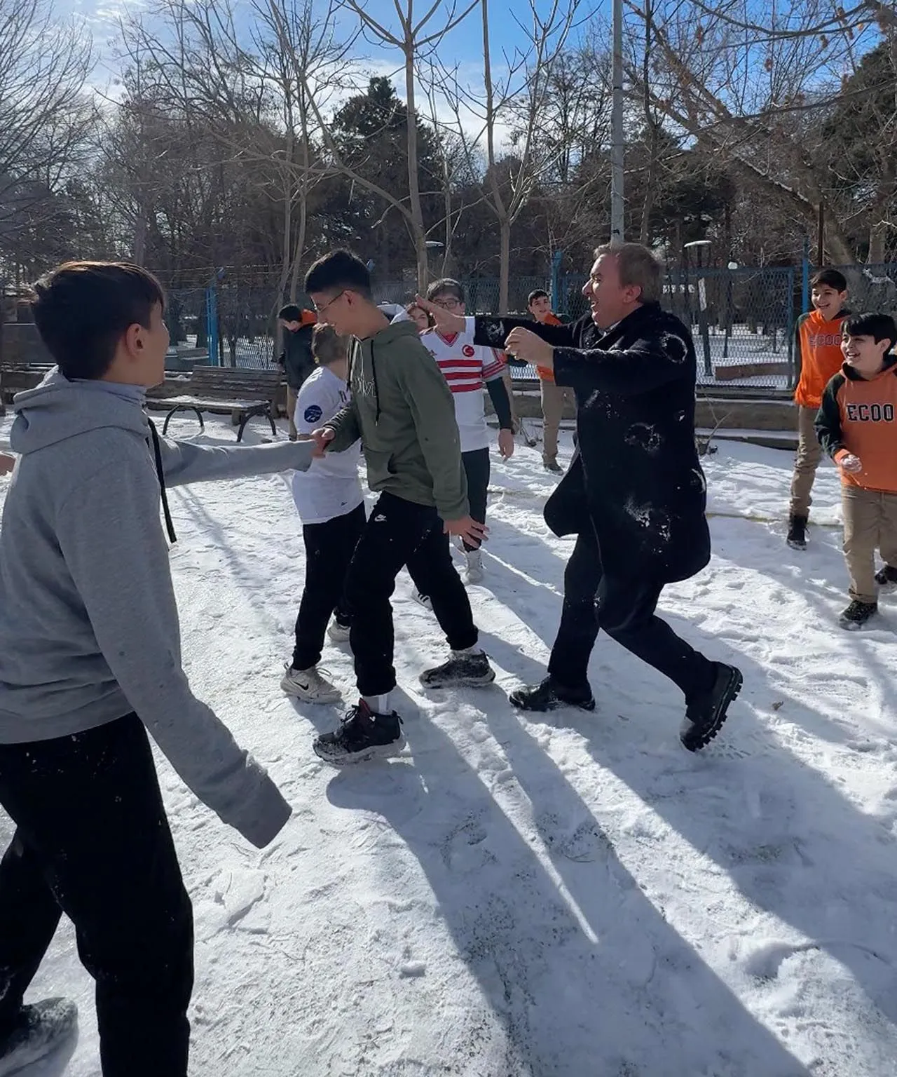 Erzincan'da öğrenciler, okulları tatil etmeyen Vali Hamza Aydoğdu'ya kar topu fırlattı. Vali Aydoğdu ile öğrenciler arasında kar topu savaşı çıktı.