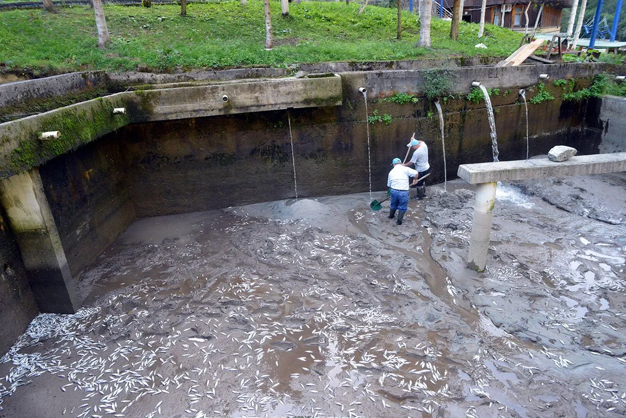 Selin vurduğu Karadeniz'de alabalık tesisindeki ''ölüm kalım'' savaşı kameralara yansıdı
