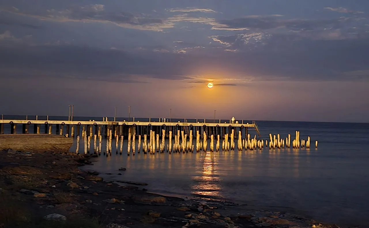 Bitlis’in Ahlat ilçesinde iskele üzerinde beliren dolunay, Van Gölü üzerinde oluşturduğu yakamozla izleyenlere adeta görsel bir şölen yaşattı.