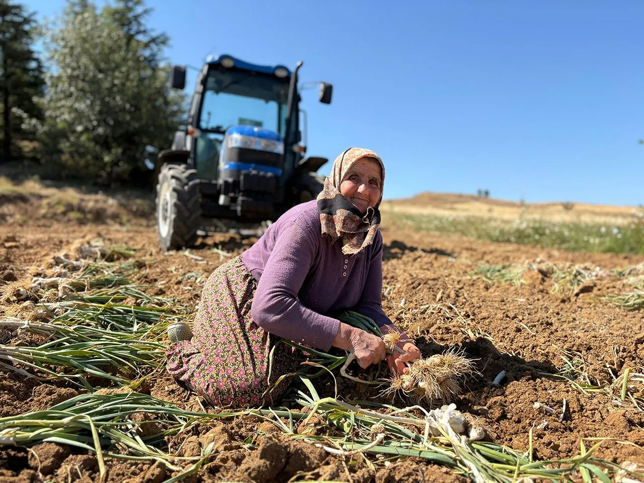 Avrupa Birliği'nce tescillenerek adını dünyaya duyuran Taşköprü sarımsağının hasadına başlandı. Kadın işçiler güneş altında çalışarak sarımsakları tarlalardan topluyor.
