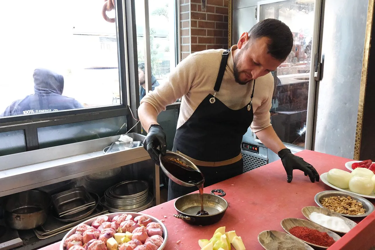 Özellikle gribin ve nezlenin doğal ilacı olarak bilinen soğan kebabı, havaların soğumaya başlamasıyla beraber kentteki kebapçılarda pişirilmeye başlandı.