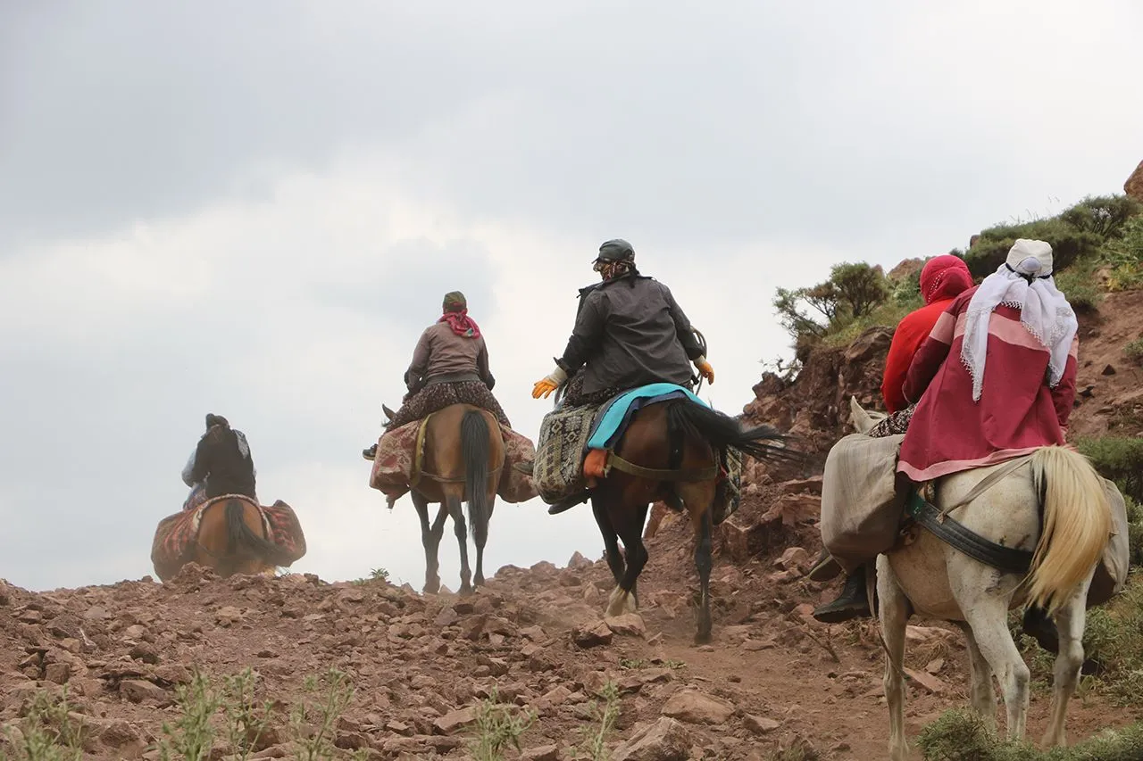 Hakkari'de Yüksekova ilçesinde "Berivan" olarak adlandırılan kadınların yaz aylarında at sırtında 7 kilometrelik yolculuğu saniye saniye görüntülendi.