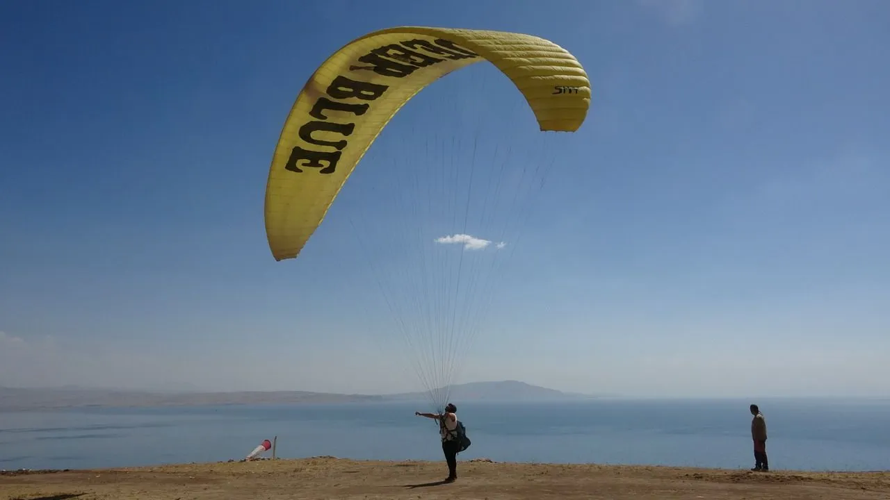 Doğal güzellikleriyle öne çıkan Erciş ilçesinin yamaç paraşütü potansiyelinin tanıtılması amacıyla etkinlik düzenlendi. Etkinliğe, Antalya'dan gelerek katılan 11 yıllık yamaç paraşütçüsü Mehmet Sadık Göller, paraşüt gösterisi yaptı.
