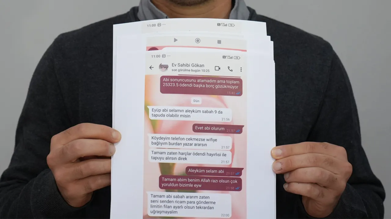 Oturdukları evin satıldığını ve şu anda kalacak yerleri olmadığını belirten E.C., yaşadığı zor durumu şöyle anlattı: "Şimdi kiraya çıkmam gerekiyor ama Antalya'da kiralar en az 20 bin liradan başlıyor. Ben asgari ücretle çalışan biriyim, iki çocuğum var. Kiraya çıkarsam iki çocukla ortada kalacağız, geçimimiz sağlanamayacak. Gerçekten çok büyük mağduriyetimiz var. Hem evimiz gitti hem paramız. Nakliyeciyle bile anlaşmıştık, eşyaları taşıyacaktık. Çok mutluyduk, artık kendi evimiz olacak diye Ama olmadı. Evi de gezdik, gördük, küçüktü ama bize yeterdi. İki odası, bir salonu vardı. Mutfağı ayrıydı, çok hoşumuza gitmişti. Abim, ‘Bu küçük size olur mu?' dediğinde, ‘Çok kişi değiliz, bize olur' demiştim."