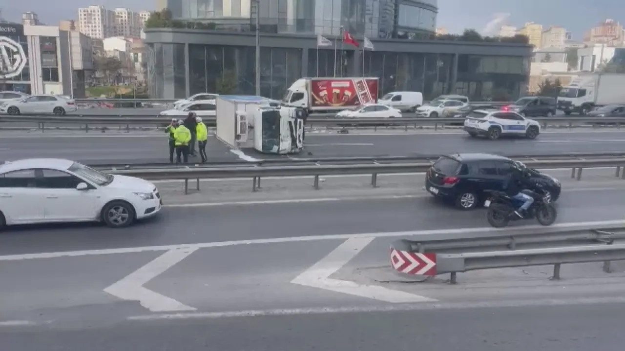 Bağcılar Basın Ekspres yolunda kamyonet devrilmesi sonucu yol trafiğe kapandı.