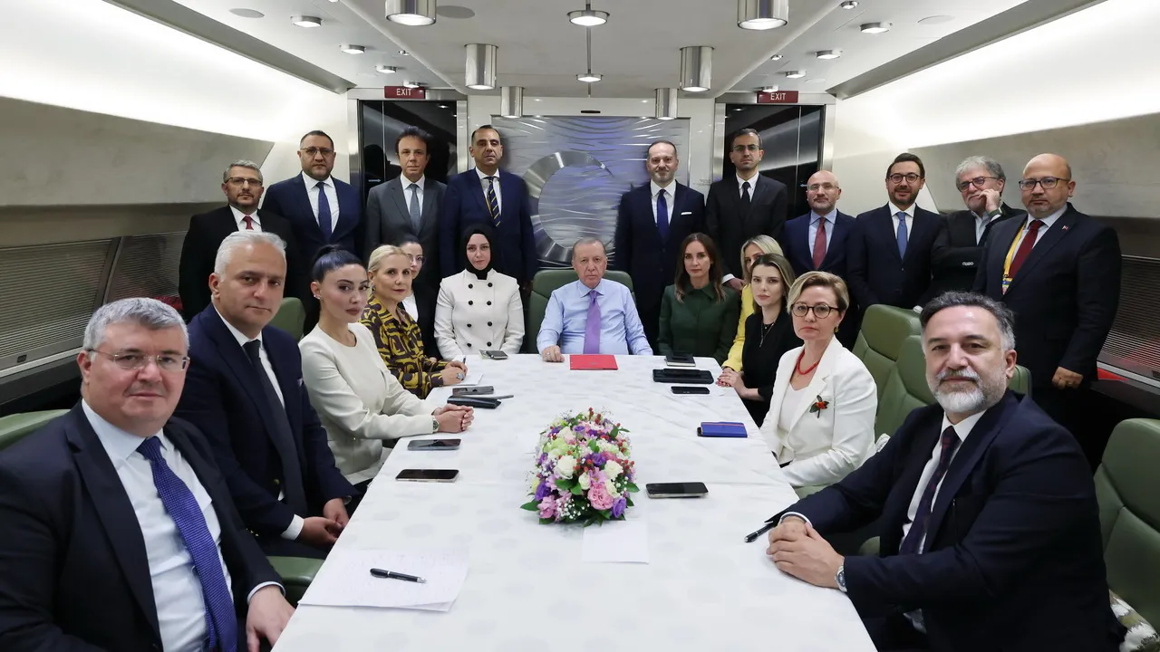 MHP Genel Başkanı Bahçeli'nin ufuk açan söylemlerini ve DEM heyetinin sorumlu tavrını sürecin başarısı açısından çok kıymetli bulduklarını bildiren Erdoğan, "Şunu büyük bir memnuniyetle ifade etmek isterim: Türkiye artık iç cephesini daha sağlam hale getirme yolunda önemli bir mesafe almıştır. Süreç daha tamamlanmamıştır ve provokasyonlara karşı dikkatli olunması şarttır. Çevremizde yaşanan son hadiseler, iç cepheyi güçlendirme çağrımızın ne kadar isabetli bir tutum olduğunu göstermiştir. Yaşananlar ülkemizde Terörsüz Türkiye'ye olan ihtiyacı ortaya koymuş ve desteği artırmıştır. Bundan sonra ülkemizin aydınlık bir geleceğe doğru yürüyüşünde daha güçlü adımlar atacağız. Önümüzdeki hafta nasip olursa DEM heyetiyle benim bir görüşmem olacak. Terörsüz Türkiye konusuyla ilgili konuşacağımız bazı konular var. Bizim bu konuda herhangi bir şüphemiz yok. Biz bir defa öyle bir düzlemde gidiyoruz ki, inancımız bu işi çözmek. Buna inanmış durumdayız. Dışişleri Bakanımız Hakan Bey, MİT Başkanımız İbrahim Bey, Milli Savunma Bakanımız Yaşar Paşa ile bu konuda uyumlu bir çalışmamız söz konusu. Rahmetli Sırrı Süreyya Önder'le, biliyorsunuz, Pervin Buldan beraberce ziyarete gelmişlerdi. İyi ve samimi bir görüşmemiz olmuştu. Arkasından maalesef rahmetli Sırrı Süreyya Önder hastaneye yattı. Önümüzdeki hafta yapacağımız görüşmeden de güzel neticeler çıkaracağımıza inanıyorum. Meclis'te kurulacak komisyonla ilgili olarak da bizler, bir arkadaşımızı görevlendireceğiz ve bu süreci inşallah başarıyla devam ettireceğiz" açıklamalarında bulundu.