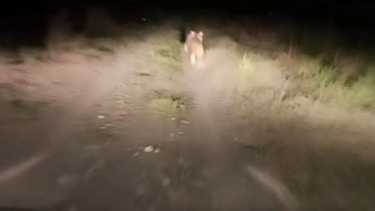 Aracın hızla yaklaştığını fark eden ayı, kısa süreli bir koşunun ardından yoldan çıkarak dağlık alana yöneldi ve gözden kayboldu.
