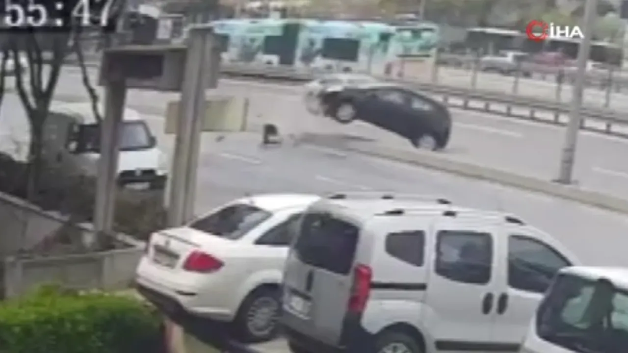 Yaşanan kaza güvenlik kameralarına da yansıdı. Görüntülerde metrobüs bariyerine çarpan otomobil savruluyor. Beton bariyerleri aşan otomobil yan yola geçerek duruyor.