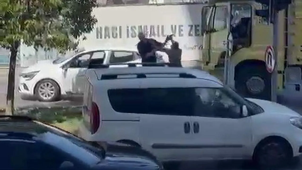 İstanbul Ümraniye’de kamyon şoförü, trafikte yol verme meselesi yüzünden tartıştığı sürücüye çekiçle saldırdı. O anlar cep telefonu kamerasına yansıdı.