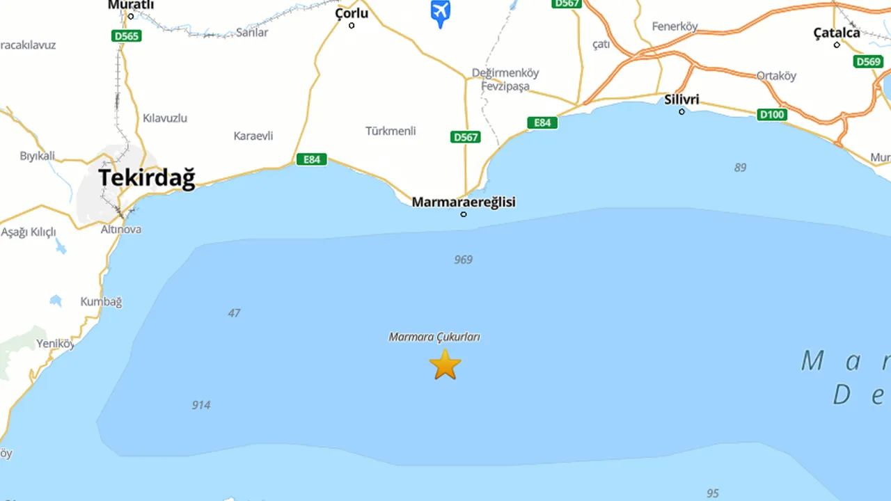 Afet ve Acil Durum Yönetimi Başkanlığı (AFAD) verilerine göre, saat 14.55 sıralarında Marmara Denizi'nde 5.0 büyüklüğünde deprem meydana geldi. Depremin merkez üssünün Tekirdağ'ın Marmaraereğlisi ilçesi açıkları olduğu bildirildi.