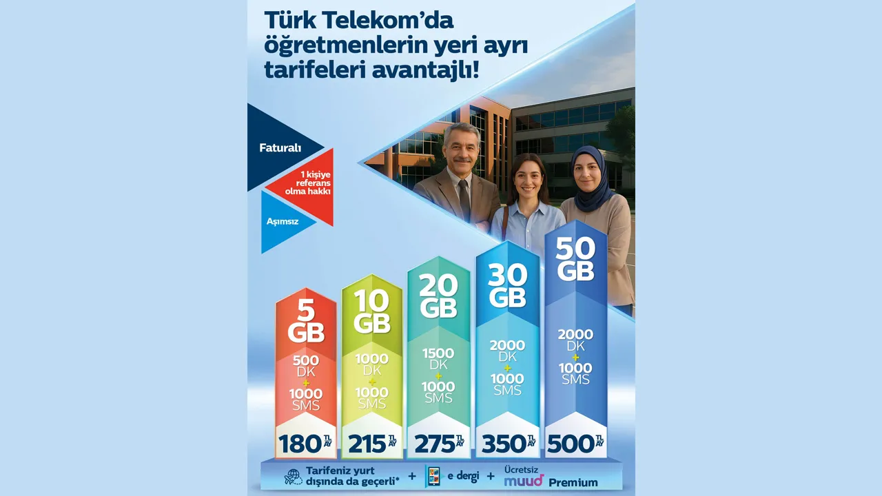 Kampanya kapsamında öğretmenler ve MEB personelleri, tercihlerine göre 5 GB, 10 GB, 15GB, 20GB, 30GB, 40GB ve 50GB internet seçeneklerinden yararlanabiliyor. Mobil faturalı tarifeler kapsamında 500 dakikadan 2000 dakikaya kadar konuşma ve 1000 SMS hakkı yer alıyor. Tarifeler taahhütlü olarak aylık 180 TL’den başlayan fiyatlarla müşterilerle buluşuyor.