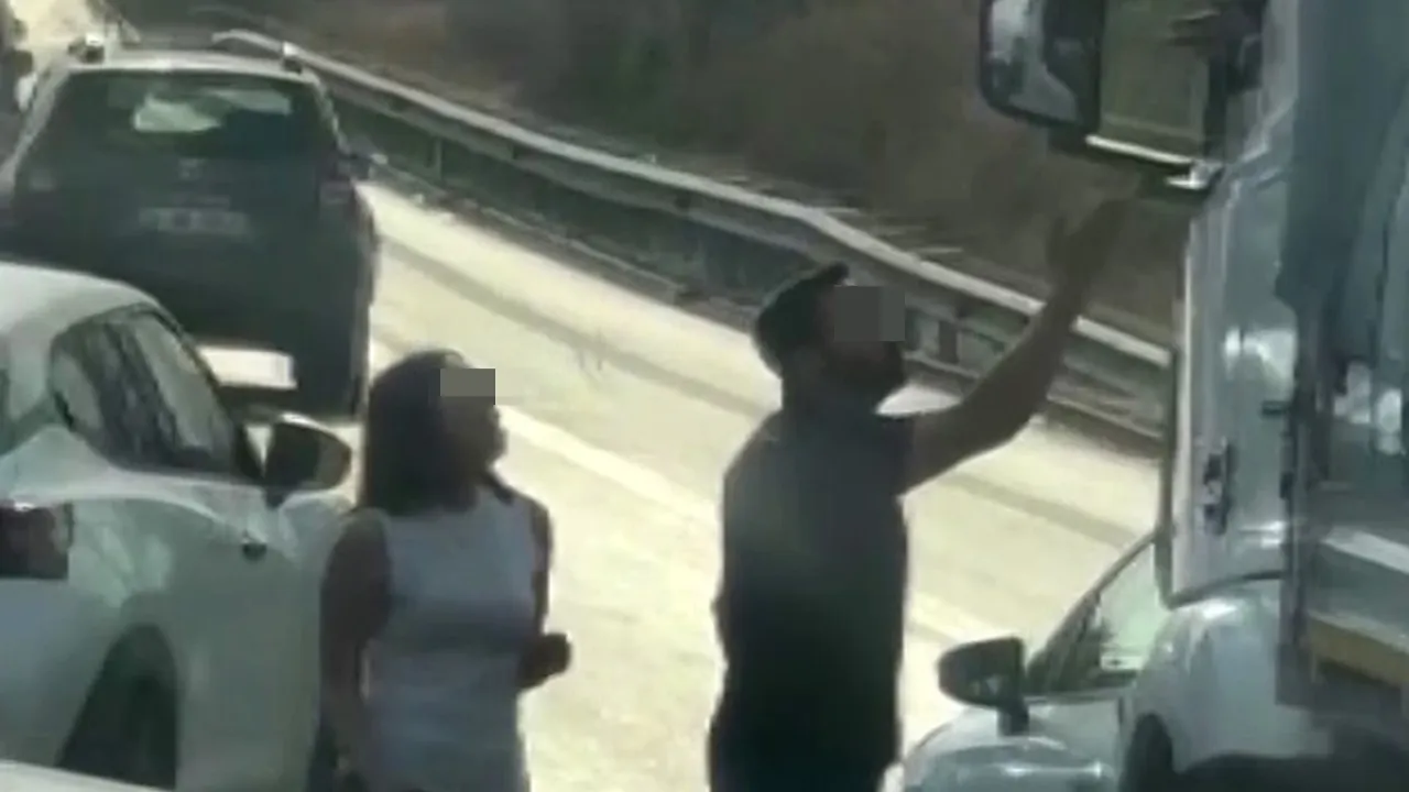 Otoyolda akılalmaz anlar: Yol kesip sürücüyle tartıştılar