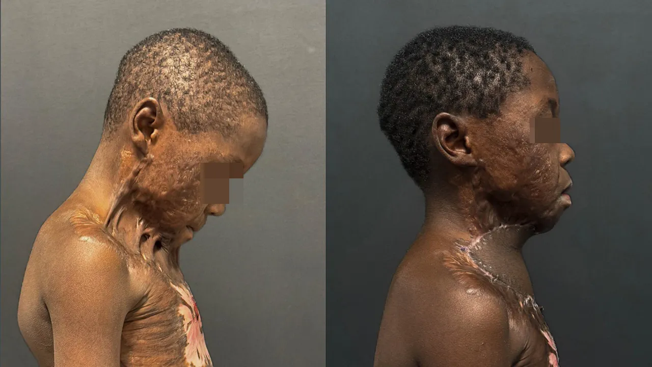 Yanık sebebiyle boyun bölgesinde ciddi hasar meydana gelen J.T., kafasını dahi kaldıramaz hale geldi. Tedavi için Kamerun'dan Türkiye'ye ailesiyle gelen J.T.'yi Plastik ve Rekonstrüktif Cerrahi Uzmanı Doç. Dr. Burak Özkan ve ekibi ameliyat etti. Operasyona ilişkin konuşan Doç. Dr. Özkan, “Yanık kontraktürleri (ikinci veya üçüncü derece yanıktan sonra cildin sıkılaşması) yaranın iyileşmesiyle hastanın hareketini bozan ve yaşam kalitesini etkileyen durumlardır. Özellikle boyun bölgesindeki kontraktür, hastanın başını boynundan kısaltarak çenesini gövdeye yapıştırmış ve başını yukarı kaldırmasını engellemişti. Ayrıca tükürük salgısının gövdesine akmasına sebep olan , hastanın konuşmasını engelleyen hatta göz kapaklarını aşağıya çeken güçlü bir kontraktür bantlarına sahipti" dedi.
