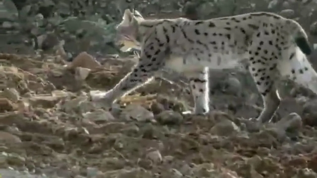 Hakkari'nin Çukurca ilçesinde nesli tükenme tehlikesi altında bulunan vaşak, cep telefonu kamerasıyla görüntülendi.