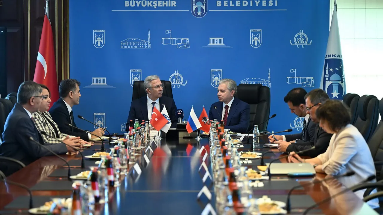 Ankara Büyükşehir Belediye Başkanı Mansur Yavaş, Moskova ile dostluk ve iş birliği protokolünü imzaladı. Yavaş, Moskova Belediye Başkanı Sergey Sobyanin, Rusya Federasyonu Ankara Büyükelçisi Aleksey Yerhov ve beraberindeki heyeti kabul etti.