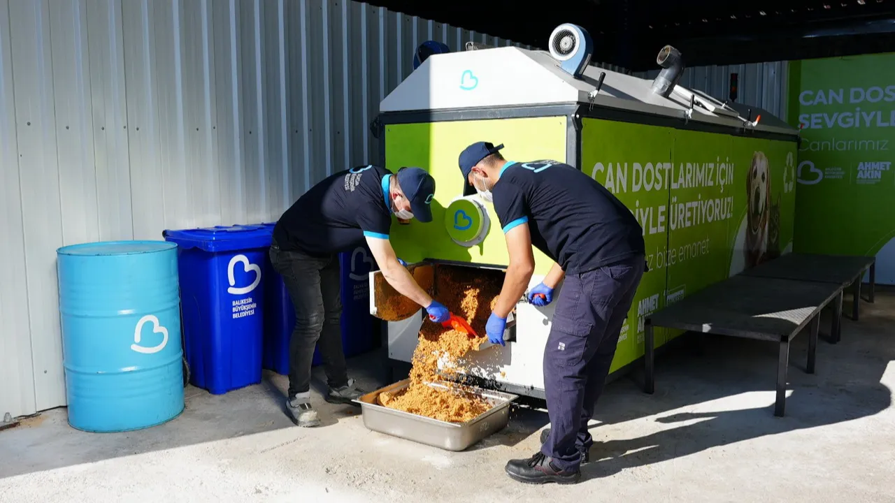 Balıkesir’de yaşayan can dostların yaşam kalitesini yükseltmeye yönelik örnek projeler hayata geçiren Balıkesir Büyükşehir Belediyesi, yeni hayata geçirdiği mama üretim merkezinde iş yerleri, işletmeler ve kurumlardan toplanan yemekleri geri dönüştürerek sağlıklı mamalar elde ediyor.