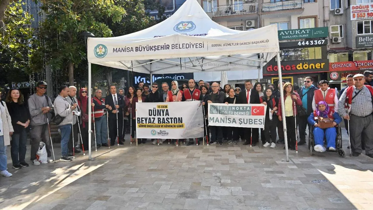Manisa Büyükşehir Belediyesi’nin destekleriyle Altı Nokta Körler Derneği işbirliği ile Dünya Beyaz Baston Güvenlik Günü’nde yürüyüş etkinliği düzenlendi. Görme engellilerin gündelik hayatta karşılaştıkları zorluklara yönelik farkındalık oluşturmak için düzenlenen yürüyüş etkinliği, ‘Engel Olma, Destek Ol!’ sloganıyla gerçekleştirildi. Yürüyüşte katılımcılara beyaz baston dağıtılarak yaşanan zorluklara yönelik empati oluşturulması hedeflendi. Cumhuriyet Meydanı’ndan başlayan yürüyüş etkinliği 15 Temmuz Demokrasi Meydanı’nda sona erdi. Yürüyüş sonunda Altı Nokta Körler Derneği Manisa Şube Başkanı Arif Zengin tarafından açıklama yapılarak, bildiriler dağıtıldı.