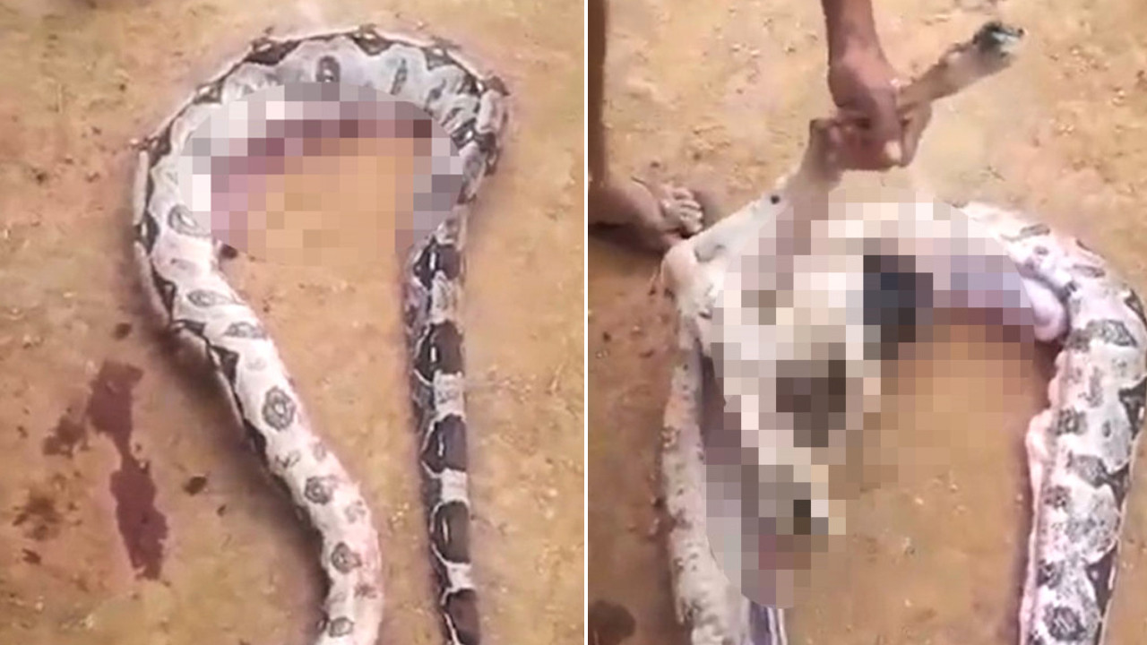 6 metrelik yılanın karnını açınca gözlerine inanamadılar