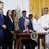 AA'nın haberine göre; Temsilciler Meclisi Genel Kurulu ve Senato'nun ardından söz konusu yasa, Biden'ın onayını aldı. Biden, söz konusu yasayı Beyaz Saray bahçesinde düzenlediği tören ile imzaladı.