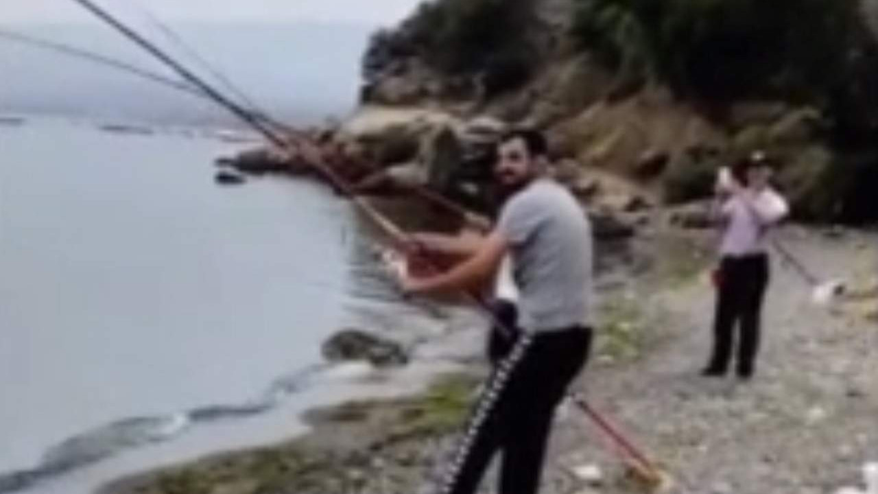 Videoyu çeken balıkçı “Denizden ilk defa böyle bir şey çıkıyor.” dedi.