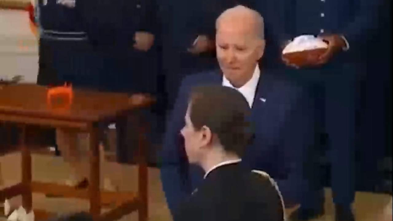 Yaptığı gaflar ve unutkanlıklar ile gündeme gelen, demans ve alzaymır hastası olduğu iddia edilen Joe Biden, yine gündemde. Kendisini ziyaret eden askeri heyetin sunduğu hediyeleri kabul etmek yerine etrafına bakınan Joe Biden, alanı terk etti. Şaşkın bakışlar altında uzaklaşan Biden'ın yaptıkları anbean görüntülendi.