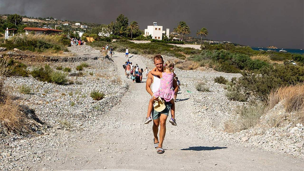 Rodos Adası’ndaki orman yangını 6’ncı gününe girerken, çok sayıda ev ve otel tahliye edildi. Ada'daki turistlerden bazıları havalimanına, bazıları ise bavulları ile sahillere akın etti. Sahile gelen çok sayıda turist, deniz yoluyla tahliye edilmeyi bekliyor.