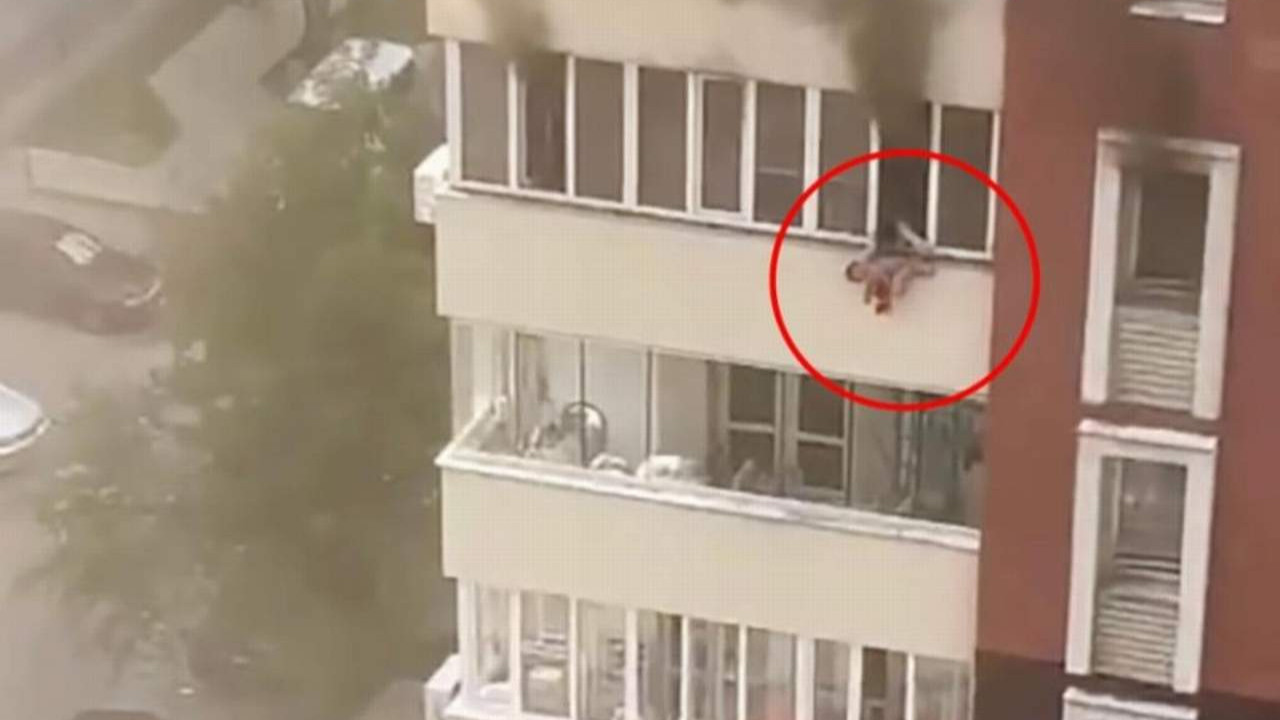 Yangında mahsur kalan bir anne yeni yürümeye başlayan çocuğunu kurtarmak için pencereden aşağıya doğru bıraktı. Gerilen çarşafla yakalanan çocuk olayı yara almadan atlattı.