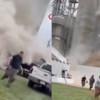 O anlar çevredekilerin cep telefonu kamerasına yansırken, işçiler panikle kaçıştı.