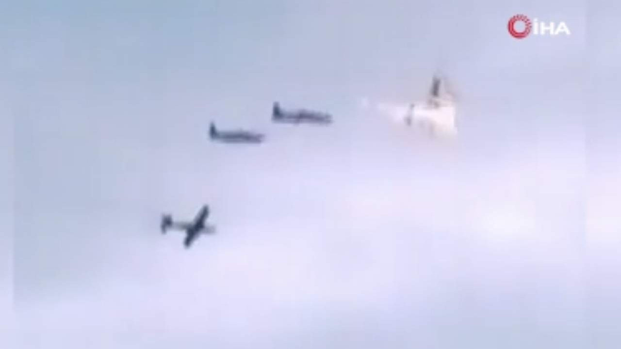 Öte yandan çevredekiler tarafından kaydedilen görüntülerde iki uçağın havada çarpıştığı ve birinin alev alarak düştüğü görüldü.
