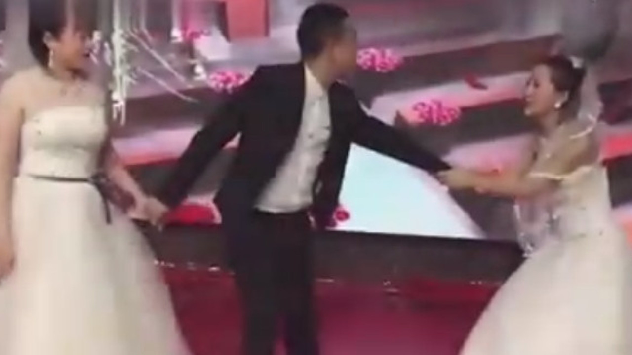 Olay tam damadın gelini öpeceği sırada gerçekleşti. Sahneye bir anda gelinlikle bir başka kız fırladı.