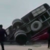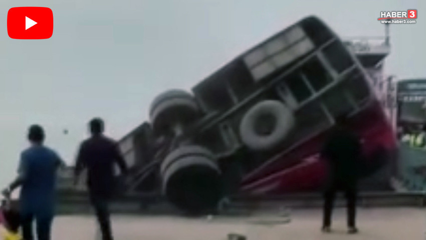 Çevredekiler tarafından kaydedilen görüntülerde, otobüsün feribota binmek için sıra beklerken bir anda hızlanarak nehre düştüğü görüldü.