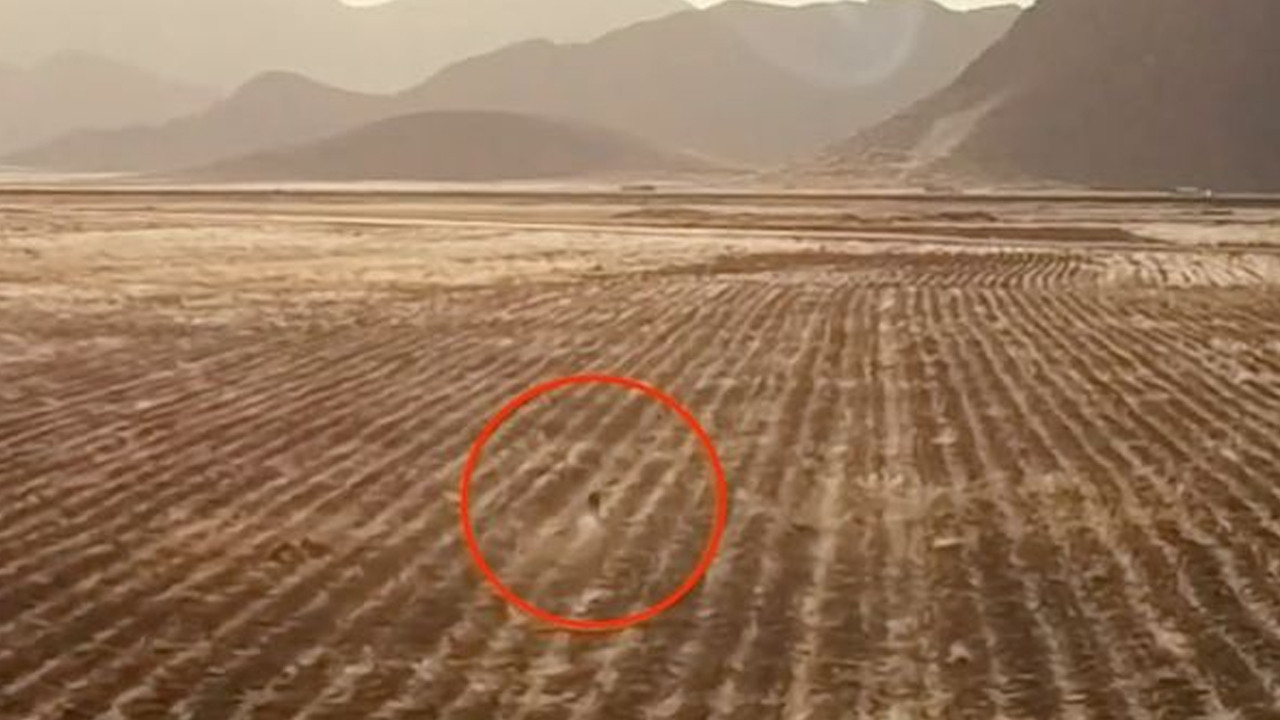Bolivya'nın Oruro kentinde çekilen drone görüntüleri, açık bir alanda yürüyen koyu renkte, iki bacaklı bir varlığı gösteriyor.